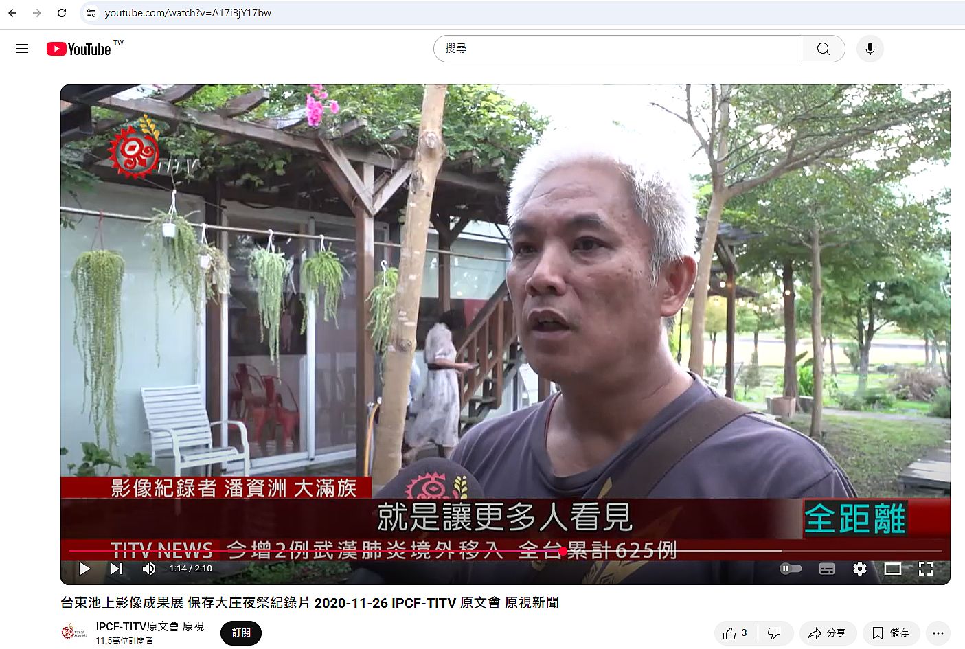 | 4 | ![]() | 網站名稱 原視新聞 網址 https://www.youtube.com/watch?v=A17iBjY17bw 網站簡介 這個影片有兩個目的: 第一個就是保存畫面保存一些做過的事情,第二是希望透過這個影片,讓影片當成一個宣傳的工具,就是讓很多人見看見大庄的牽曲、看見大庄的大滿人,我們是希望我們成為心中想像的那個樣子,而不是其他的那個人群,然後要我們成為甚麼樣子。在這個影片裡面,我們要去探討一個部分,就是除了讓更多人去認識我們平埔族的部分以外,也讓我們自己的族群知道我們自己一個文化的價值,期盼透過影像交流,建構平埔族群文化共識。 | 李雨薇 | 2025/8/28 上午 09:42:57 |