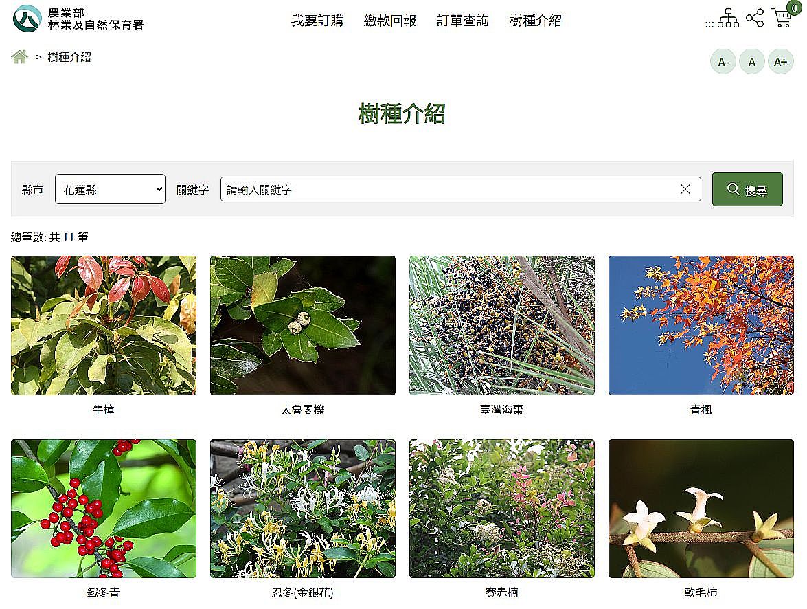 | 4 | ![]() | 網站名稱 台灣原生樹木種苗網 網址 https://theme.forest.gov.tw/forestplant/info?ca1=10015&iPage=1 網站簡介 這是林務局設置的網站,簡單來說,它是一個專門販賣、介紹及推廣臺灣原生植物及樹苗的平台。他們和全臺灣的育苗業者合作,一起大量生產臺灣特有的樹木種苗。如果需要購買台灣的特有本土種植物,可以到這個網站直接挑選想要購買的臺灣特有的本土植物及樹苗。如果想查詢台灣特有的原生種植物介紹,也可以到這個網站查詢。 | 呂亞熙 | 2025/9/18 下午 12:36:47 |