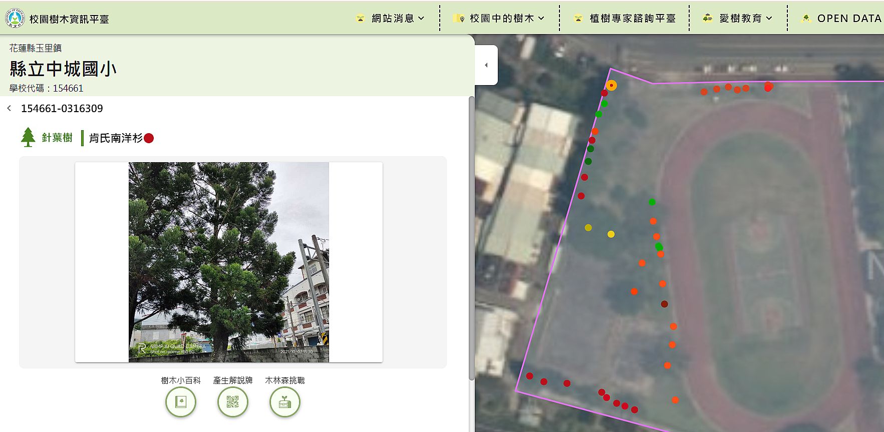 | 5 | ![]() | 網站名稱 校園樹木資訊平台 網址 https://edutreemap.moe.edu.tw/ 網站簡介 這是由教育部建立的網站,目的是提供全國公立高級中等以下學校的校園樹木資訊。我們透過「全臺校園樹木地圖」查詢各縣市校園的樹木數量和種類,我們可以在這裡查詢學校的樹木。網站中還有「植樹專家諮詢平臺」和「養護專區」,提供樹木的植栽、養護手冊、相關規範和諮詢服務。 | 葉鑫楷 | 2025/9/22 下午 03:50:17 |