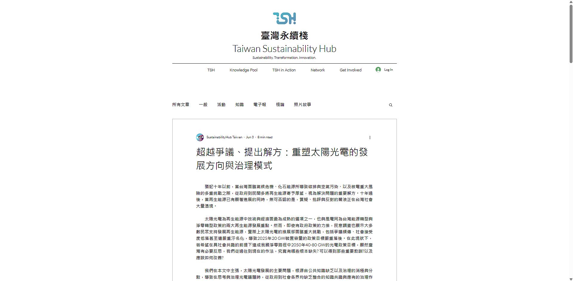 | 1 | ![]() | 網站名稱 超越爭議、提出解方:重塑太陽光電的發展方向與治理模式 網址 https://www.taiwansustainabilityhub.org/post/tshviewpv 網站簡介 臺灣目前可以往綠能發電的方向發展,其中光電板是個很好的選擇。雖然已經在各地設置好光電板,仍然傳出一些爭議,例如:光電板和保育類動物的棲息地重疊,影響到農業生產等,引發社會關注與疑慮。其實這些問題與臺灣有國土空間不當利用、農業衰退等議題也有相關性,因此在設置光電板等再生能源發電機時也需要考慮到這些問題。作者認為臺灣若要順利推動綠能發電就需要重新檢視整體政策與治理模式。文章強調,要建立清楚且公平的規劃與參與制度,包括整合中央與地方政府、建立公共知識平台、設立民主治理機制,才能讓不同社群能夠理解與參與。 | 張博堯 | 2025/8/5 下午 01:51:43 |