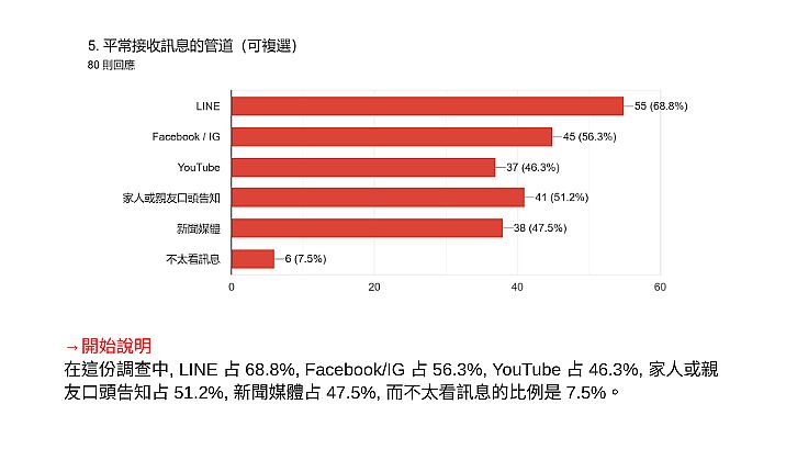 | 3 | ![]() | 作者 徐紫蕎、許芷寧、楊賴心妤 來源 Google文件 描述 根據長條圖的結果,我們發現大部份的人平常接收信息的管道都是從網路上來的。 | 徐紫蕎 | 2025/9/25 下午 03:31:01 |