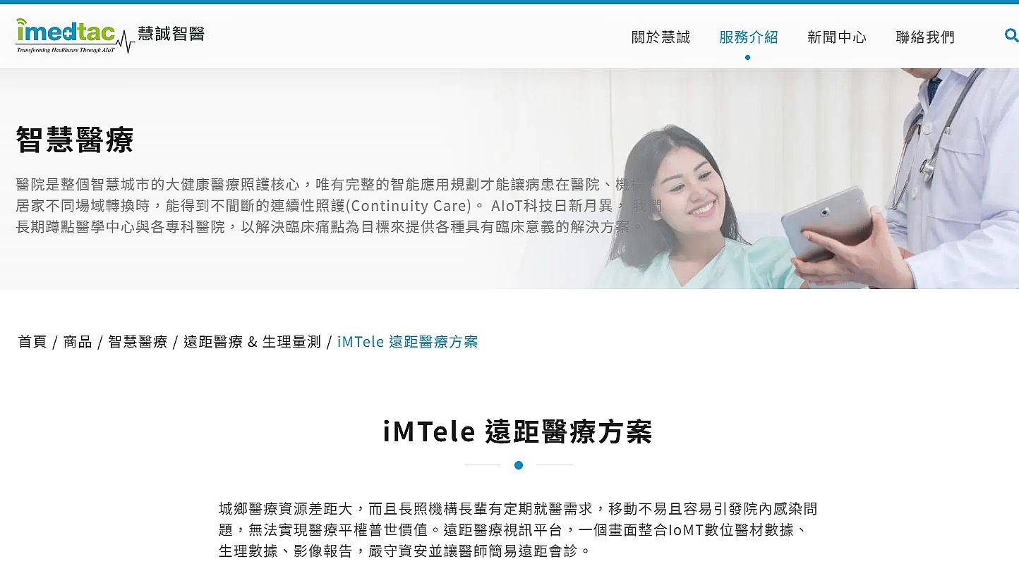 | 2 | ![]() | 網站名稱 iMTele 遠距醫療方案 - imedtac Co., Ltd. 網址 https://www.imedtac.com/service/telemedicine/ 網站簡介 本報告於2000 年出版,由行政院衛生署公共衛生研究所針對花蓮秀林鄉、萬榮鄉與卓溪鄉的居民健康現況與醫療需求進行調查與分析。透過問卷與訪談揭示當地慢性病、預防照護、資源可近性與文化因素間的關係,突顯偏鄉弱勢族群在醫療上的迫切需求。研究結果提供地方政府與醫療機構在偏鄉資源投入與策略設計上的重要參考依據。 | 趙以愛 | 2025/8/9 下午 02:01:12 |