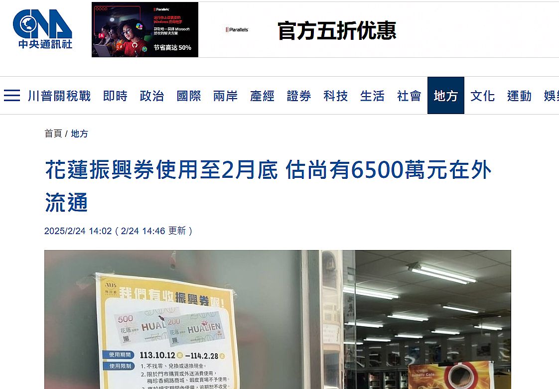 | 2 | ![]() | 網站名稱 CNA 中央通訊社 — 花蓮振興券滿月報導 網址 https://www.cna.com.tw/news/aloc/202502240129.aspx 網站簡介 報導振興券上路一個月後,夜市攤商明顯感受到人潮增加,顧客買氣回升,反映政策在刺激地方消費上的即時效應。 | 呂簡林 | 2025/8/10 上午 09:22:27 |