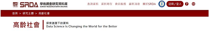 | 3 | ![]() | 網站名稱 中央研究院 SRDA 高齡社會研究主題專區 網址 http://srda.sinica.edu.tw/topic/%E9%AB%98%E9%BD%A1%E7%A4%BE%E6%9C%83/?ut 網站簡介 彙整高齡化速度與衝擊;強調台灣變成超高齡社會的迫切性,以及相關經濟、養老與醫療制度議題 | 高子彤 | 2025/8/19 上午 08:59:01 |