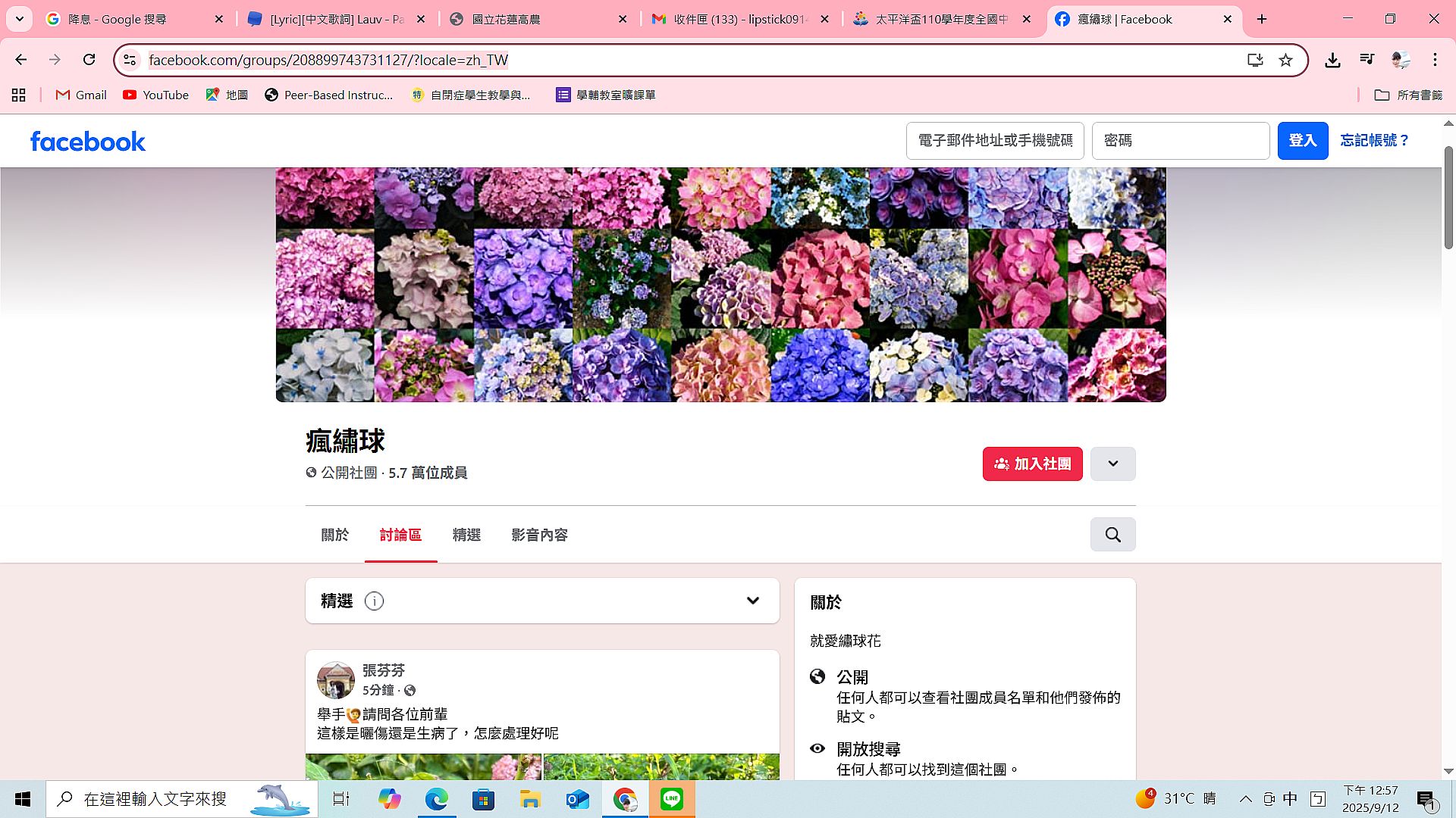 | 2 | ![]() | 網站名稱 瘋繡球 網址 https://www.facebook.com/groups/208899743731127/?locale=zh_TW 網站簡介 這是臉書網站中的瘋繡球社團,因為我們培養繡球花作為樣本,社團有許多網友會分享栽種的問題,如果繡球花生病也會在社團中詢問解決方法。 | 洪予澤 | 2025/9/12 下午 12:58:12 |