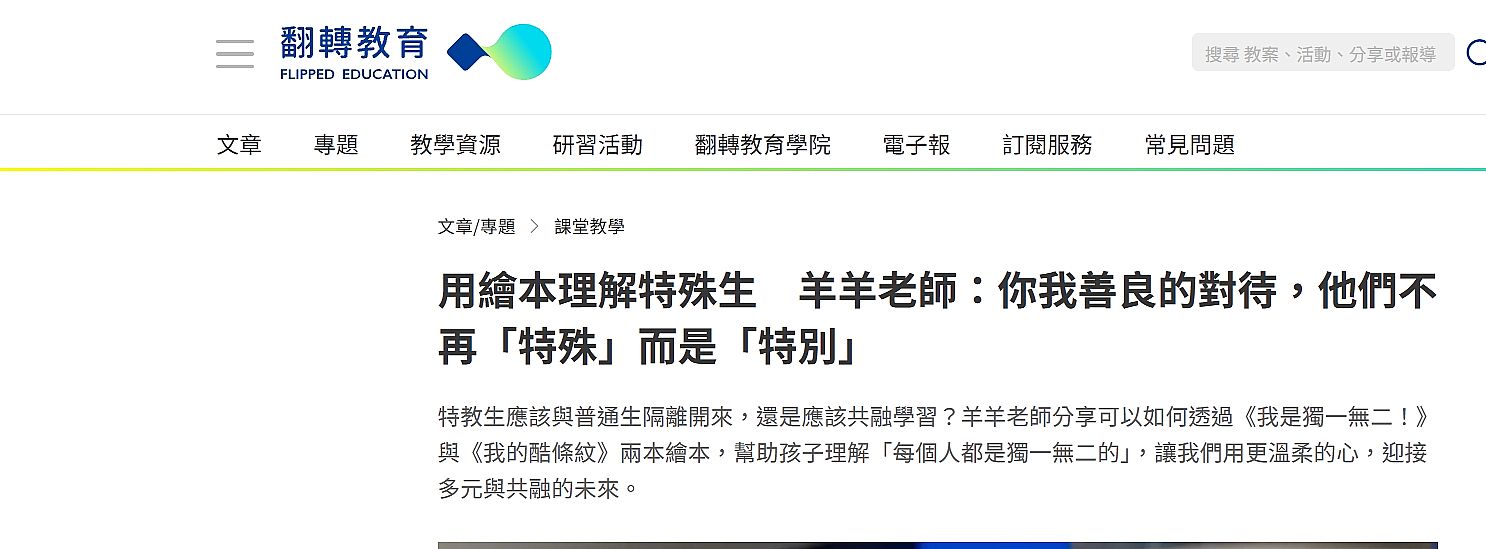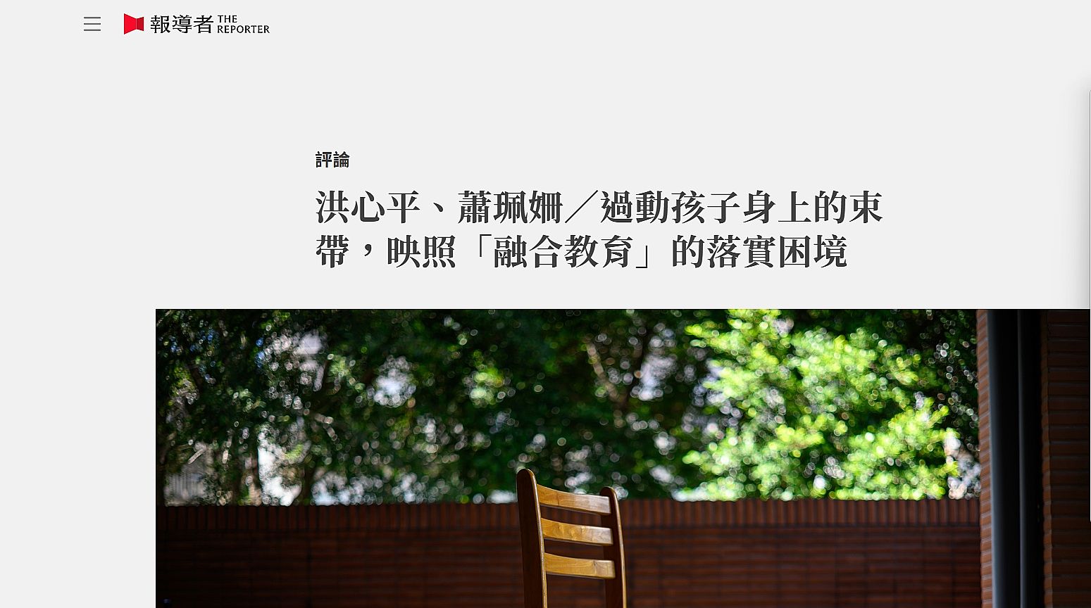 | 3 | ![]() | 網站名稱 洪心平、蕭珮姍/過動孩子身上的束帶,映照「融合教育」的落實困境 網址 https://www.twreporter.org/a/opinion-challenges-for-integrated-education 網站簡介 這個網站先從一個報導開始說起,一則新聞說一個老師為了保護其他同學,用束繩將一個過動症且有很多自傷、躁動的狀況學生用彈力繩束起來,網站裡面有說到,融合教育很難做到的原因在於,其實很多特教學生的狀況是很難處理、難以達成他們的需求,老師需要花更多時間在看顧他們、同學也需要給予更多的包容。 雖然這是一個很遠大的目標,也會耗費很多的心力,但如果想要培養一個互相理解包容的社會,或許這也是一個方法? | 陳忻愉 | 2025/9/30 下午 08:54:40 |