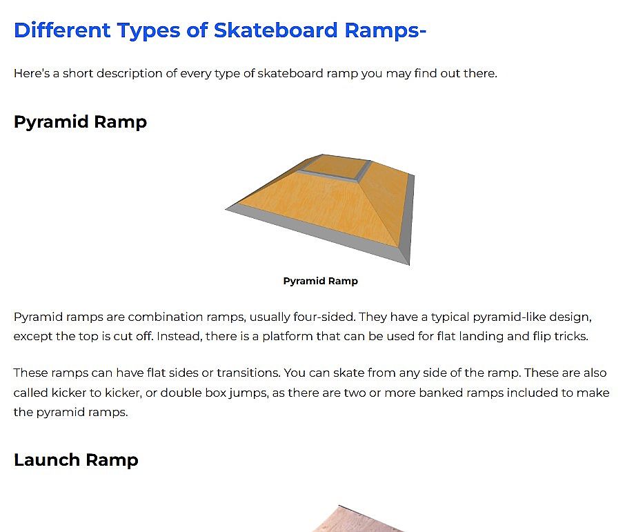 | 3 | ![]() | 網站名稱 Best Types of Skateboard Ramps 網址 https://www.discountramps.com/info/types-of-skateboard-ramps/a/b58/?srsltid=AfmBOorO7p1BBuErSriNwBqDFM5f9y7c6IXHefflicMDxRTGSeLBBwDj 網站簡介 起跳坡道是緩坡設計的基本坡道,可提供中等翻轉高度並適合空隙跳躍。箱型跳台是兩側起跳板連接平面,方便滑手連續組合翻轉與手滑技巧。波浪坡道以起伏曲線設計,幫助滑手控制速度並連續完成旋轉技巧。四分之一管是圓弧形坡道,可提供空中彈跳、過渡磨板及快速空中技巧的練習區。脊型坡道是背靠背的兩個四分之一管,允許滑手在空中連續過渡而保持動能。半管由兩個四分之一管組成,滑手可來回滑行累積速度並完成空中技巧。垂直坡道在四分之一管頂端加垂直延伸,確保滑手安全落回起跳角度。碗型坡道呈碗狀,讓滑手快速累積速度並安全獲得空中彈跳。金字塔坡道是頂部切掉的金字塔形結構,適合從任一側進入並完成平地或翻轉技巧。欄桿用於連接坡道,方便滑手在平地與坡道間進行磨板 | 趙璽文 | 2025/9/18 下午 04:53:41 |