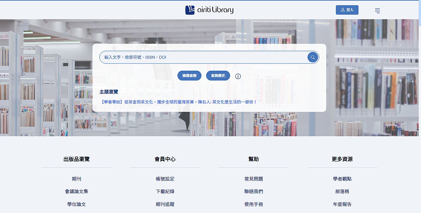 | 2 | ![]() | 網站名稱 Airiti Library 華藝線上圖書館 網址 https://www.airitilibrary.com/ 網站簡介 是一個整合學術資訊的數位平台,提供豐富的中文與外文電子資源。其內容涵蓋期刊論文、學位論文、會議論文、專書及報紙等,領域廣泛,包含人文、社會、醫學、教育與科技等多種主題。平台支援關鍵字搜尋與進階檢索,方便使用者快速找到所需資料,並提供全文下載服務,讓學習與研究更有效率。華藝線上圖書館不僅是學術研究的重要資源,也是學生、教師與專業人士進行知識探索與學術交流的好幫手。 | 卞蜚 | 2025/9/23 下午 02:46:32 |