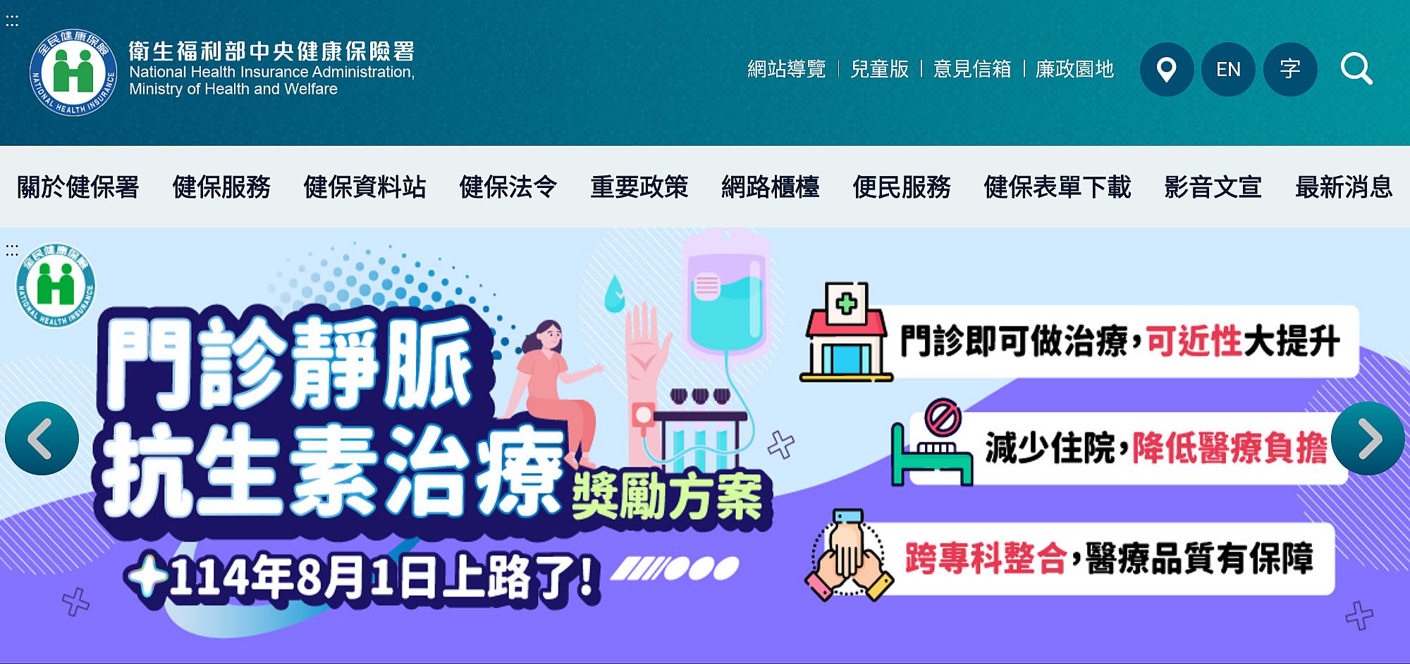 | 5 | ![]() | 網站名稱 衛生福利部中央健康保險署 網址 https://www.nhi.gov.tw/ch/mp-1.html 網站簡介 衛生福利部中央健康保險署的網站是關於全民健康保險的官方網站,。 它主要提供: 1.健保相關資訊查詢: 健保的法規、保費計算、特約醫院診所查詢等。 2.線上服務: 透過「網路櫃檯」辦理關於健保卡相關的申請,也可以查詢個人的健保資料。 3.健康存摺專區:可以線上查詢自己的就醫紀錄、健康檢查資料 這個網站讓民眾快速了解關於健保的知識,以及查詢自己的健保資料,可以更方便的進行健康管理。 | 陳瑜禎 | 2025/9/28 上午 11:57:42 |